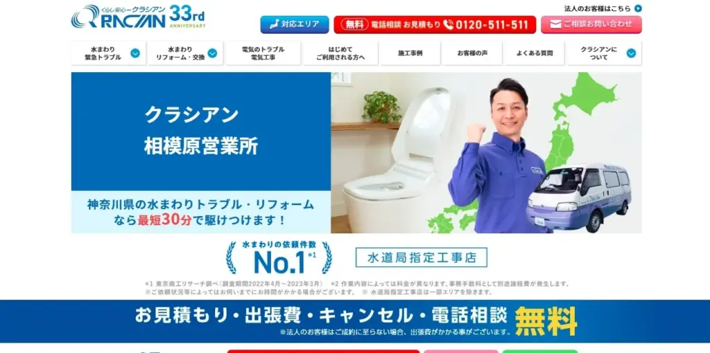 電話での受付は8:00~21:00ですが、ウェブからは24時間365日相談可能。現地調査や見積りがすべて無料なので、費用や工事内容を他社と比較しやすいです。他社より料金が高い場合、見積もり提示で値下げしてもらえる可能性があります。