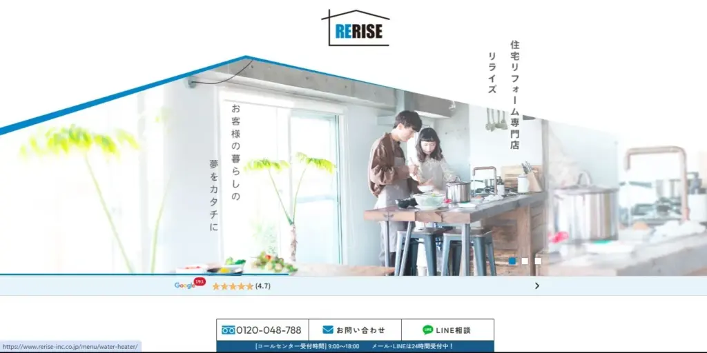 電話での受付は8:00~21:00ですが、ウェブからは24時間365日相談可能。現地調査や見積りがすべて無料なので、費用や工事内容を他社と比較しやすいです。他社より料金が高い場合、見積もり提示で値下げしてもらえる可能性があります。