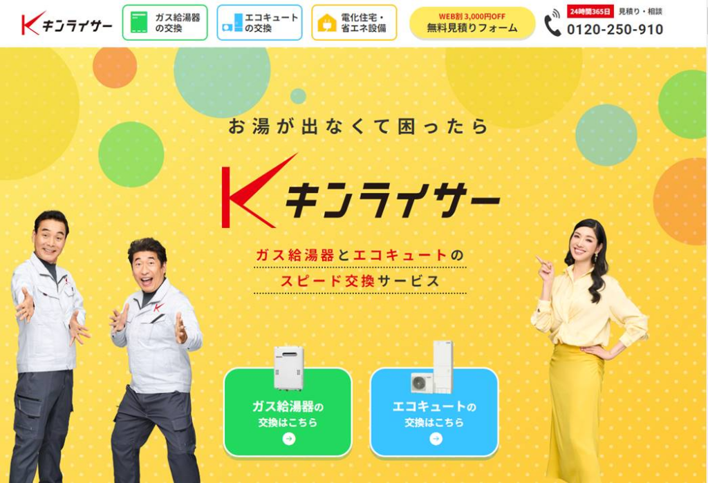 キンライサーは創業26年、累計30万件の実績を誇る「早い、安い、信頼」のガス給湯器交換専門店です。