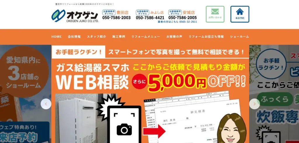 WEBフォームから成約した場合、3000円オフになる割引キャンペーンも実施。予算が少ない場合でも給湯器交換ができるよう、利用者目線に立ったサービスを提供している業者です。